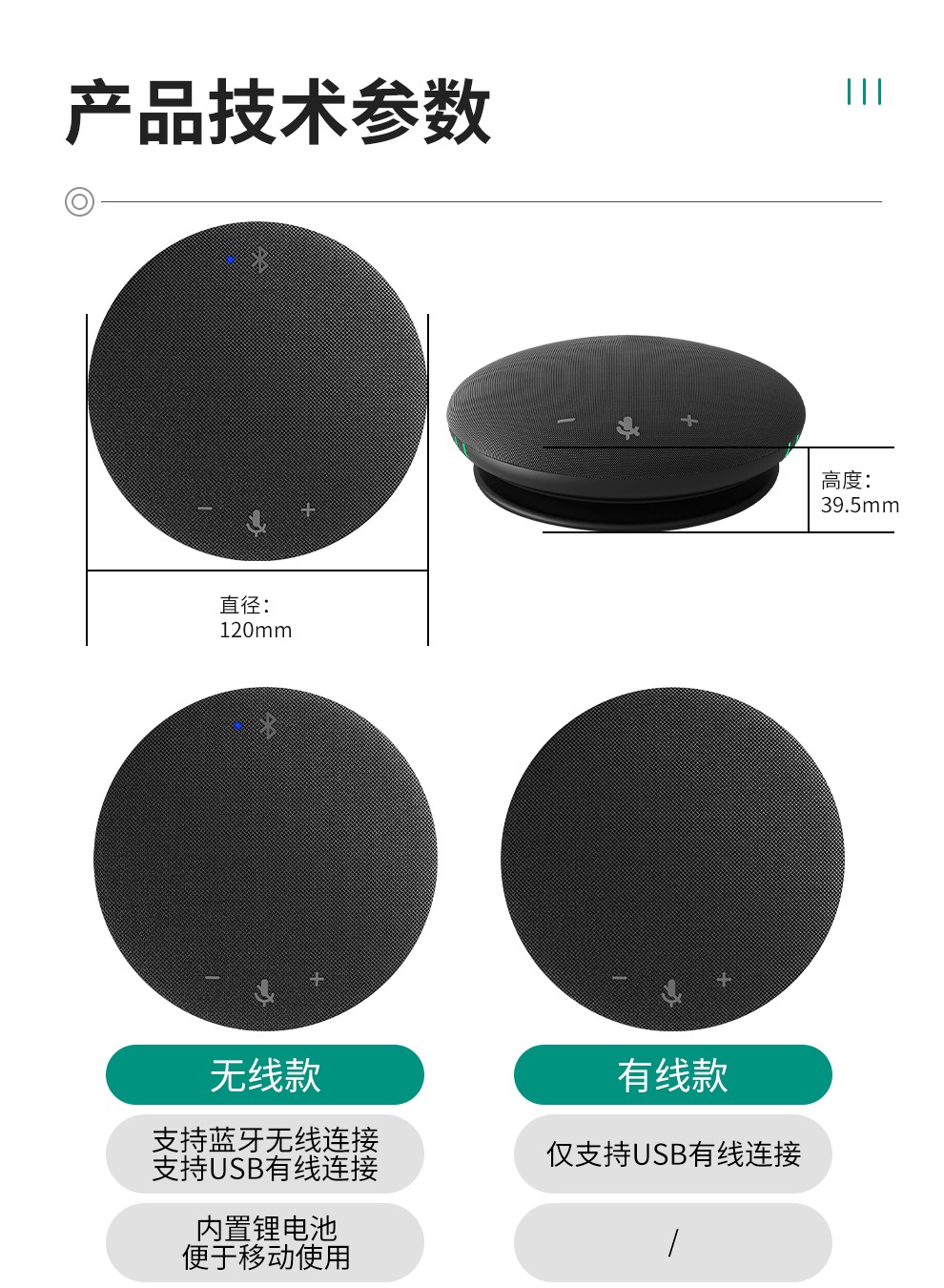 HIKVISION全向会议麦克风360°收音拾音インターネットリモートで视频桌面会议话筒ワイヤレス扬声器USB免驱蓝牙连接桌面型降噪 【3米拾音】DS-65VA300Bワイヤレス款
